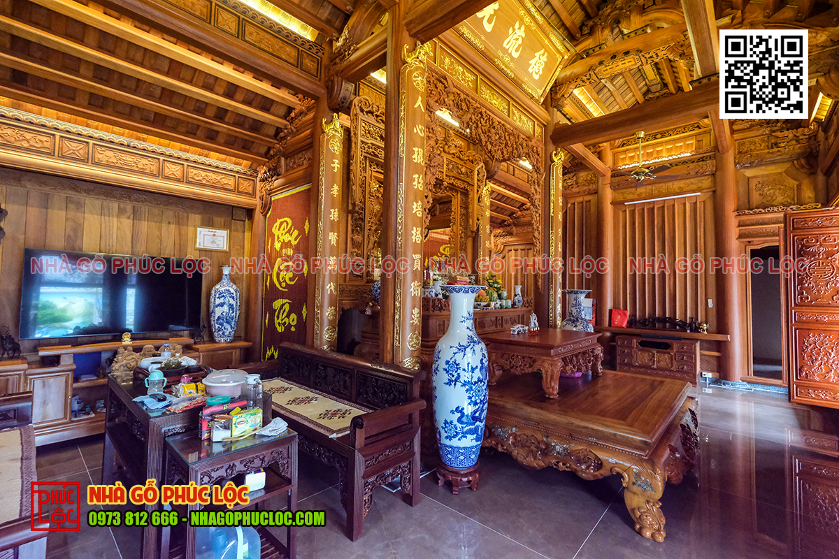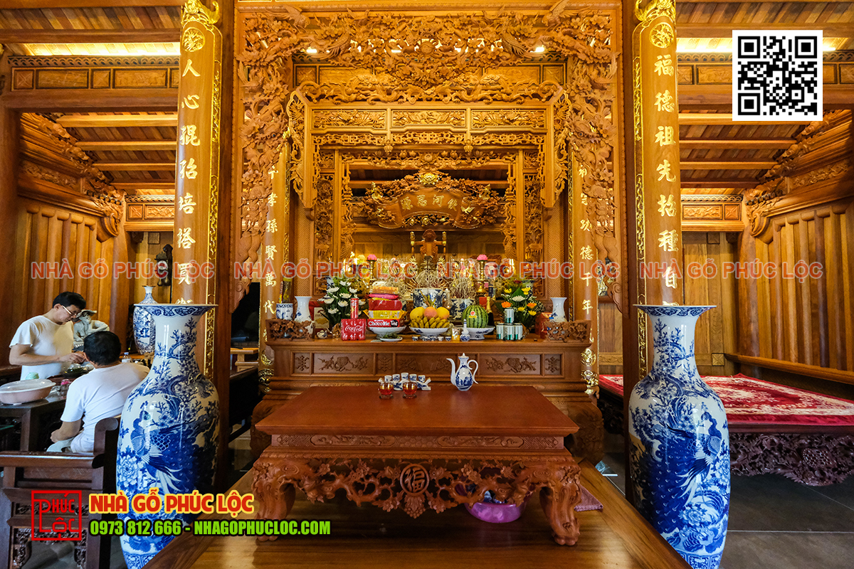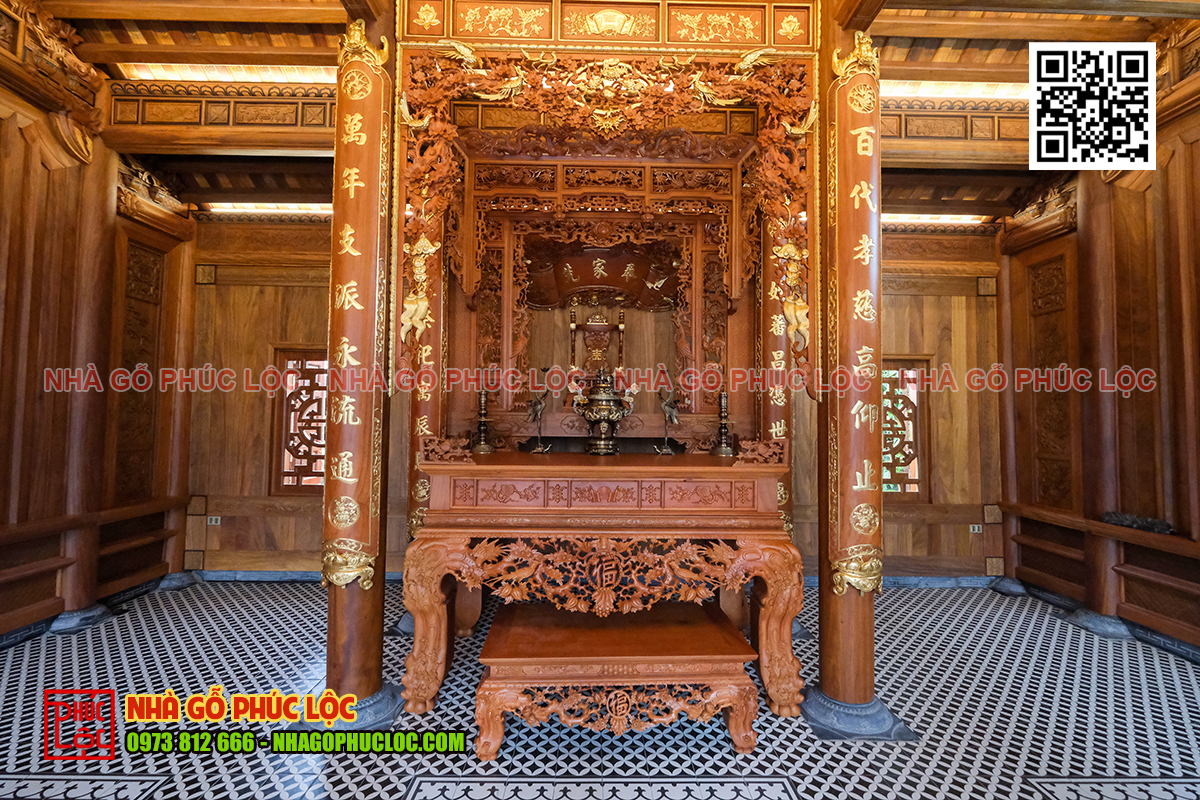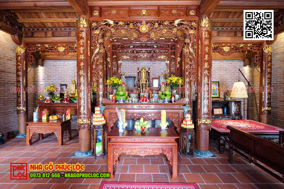 Gian thờ nhà gỗ 5 gian
