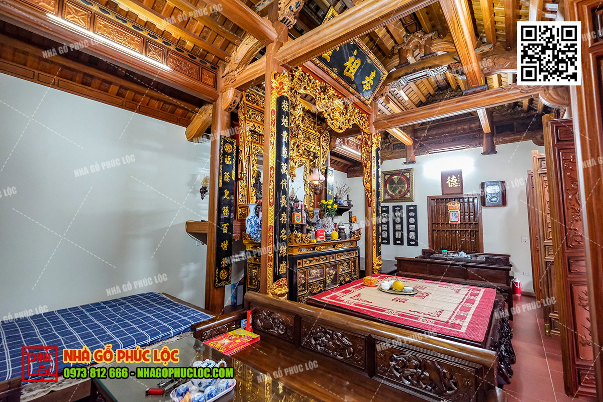 Toàn cảnh gian thờ nhà gỗ 3 gian